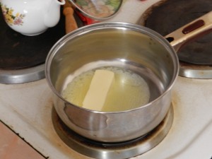 4. Сливочное масло должно быть натуральным. Я использую «Крестьянское» или «Качугское» (такое продается в Иркутской области). Настоящее сливочное масло при заморозке начинает крошиться, теряет пластичность. А при нагревании «пенится», на его поверхности образуется белый налет, плаваюший на золотистом топленном сливочном масле. Кусочек сливочного масло растапливаем на слабом огне, чтобы масло не начало гореть или закипать.