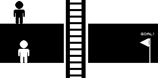 Но затем, если возникает возможность того, что черный персонаж (никакого расизма) может ходить напротив черной лестницы, можно ли белому ходить через негативное пространство, которое образует эту лестницу? Мне кажется, что такие ситуации вполне допустимы, но нужно следить за тем, чтобы игрок понимал, когда это допустимо, а когда нет. В этом примере, лестница - это явно какая-то штука, на которую можно залазить, но вместе с этим, негативное пространство, которое лестница формирует не дает нам понять, что белый может пройти через лестницу или залезть на нее.